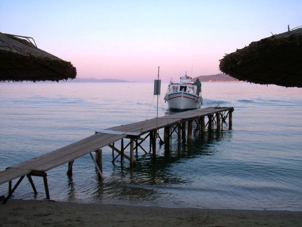 This teeny village is home to a handful of tavernas, bars, shops and a well stocked mini-market. Steep hills that border the area protect the fine sand and light shingle beach from the strong northerly winds offering a calm beach resort.