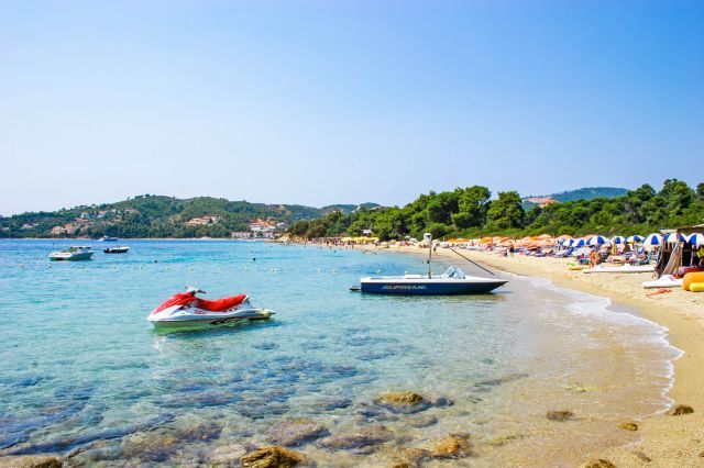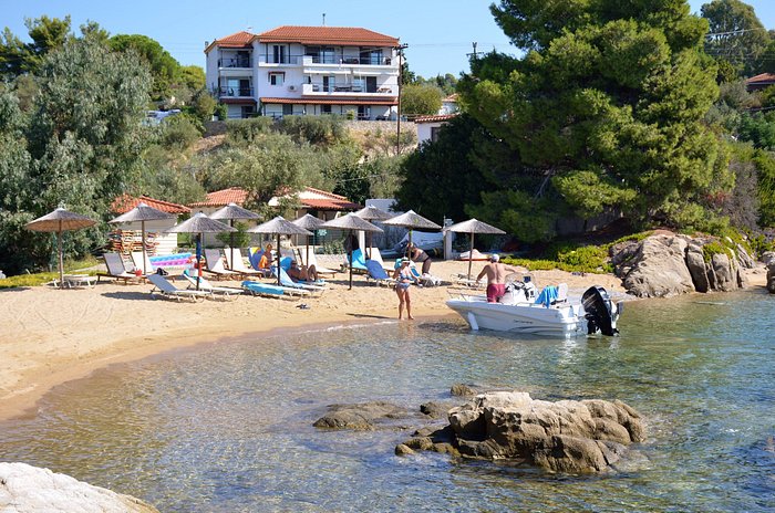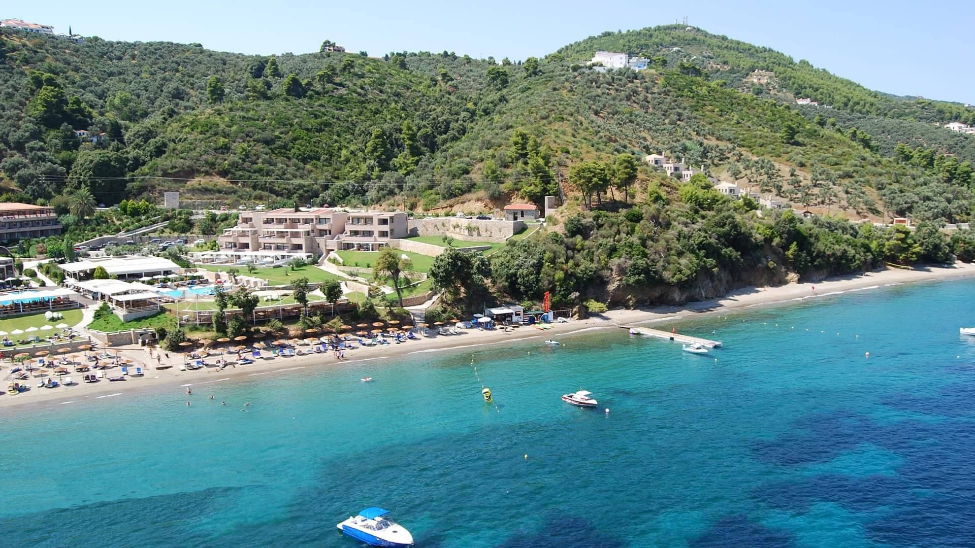 Nestled just around the bay from Skiathos Town, about 1 km outside of the town, Megali Ammos is perfectly placed for relaxing.