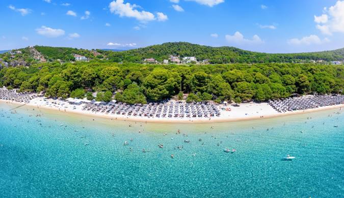 At just a 15-20 minute drive from Skiathos Town, you’re well placed to explore both the island and its’ main town from laid-back Troulos. With traditional tavernas lining the Blue Flag beach, it’s the perfect place to unwind in the sun. There’s a handy mini market at the top of the road leading to the beach too.